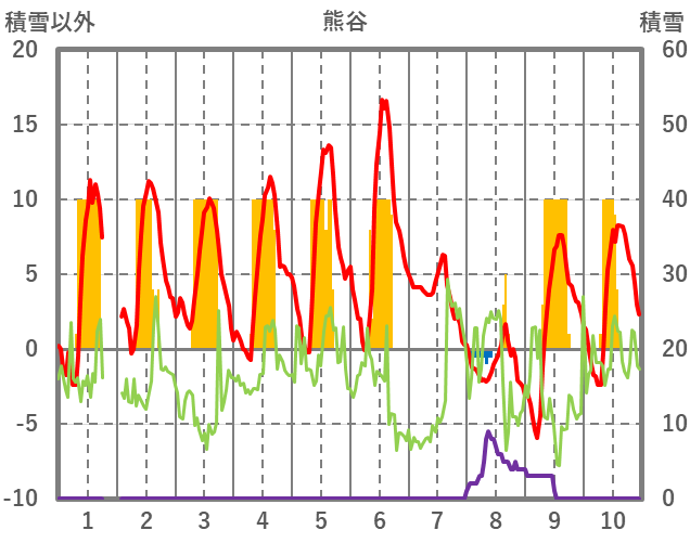 | 日 | 時 | 気温 | 降水 | 風向/風速 | 日照 | 積雪 | 降雪 |