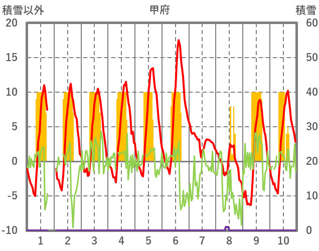 | 日 | 時 | 気温 | 降水 | 風向/風速 | 日照 | 積雪 | 降雪 |