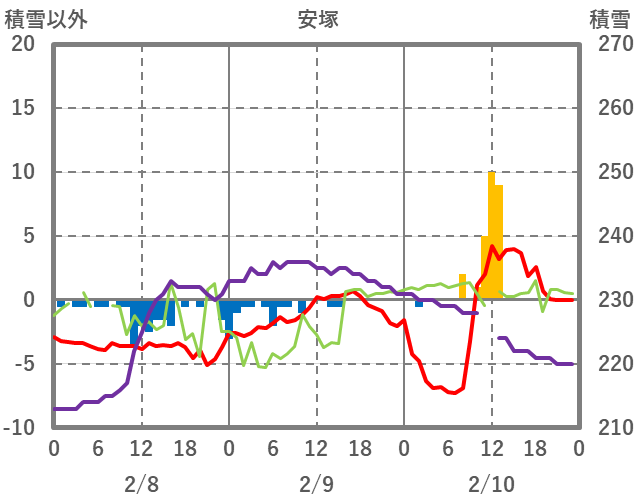| 日 | 時 | 気温 | 降水 | 風向/風速 | 日照 | 積雪 | 降雪 |