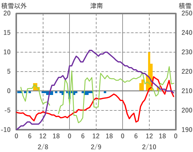 | 日 | 時 | 気温 | 降水 | 風向/風速 | 日照 | 積雪 | 降雪 |