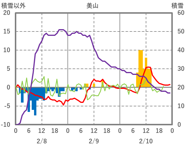 | 日 | 時 | 気温 | 降水 | 風向/風速 | 日照 | 積雪 | 降雪 |
