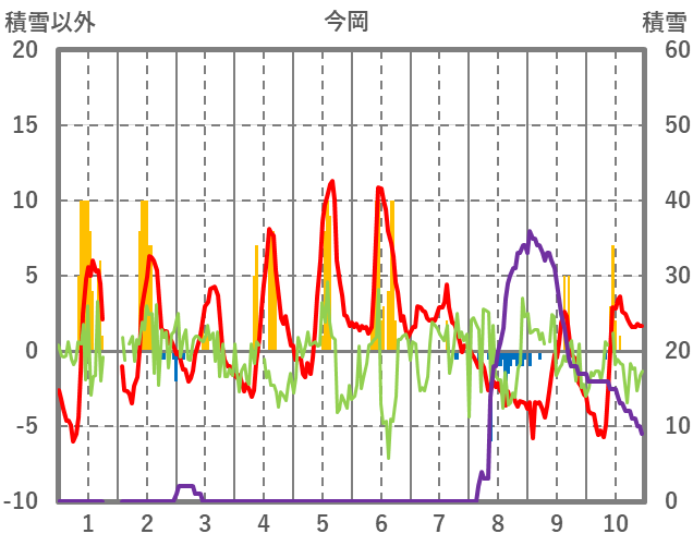 | 日 | 時 | 気温 | 降水 | 風向/風速 | 日照 | 積雪 | 降雪 |