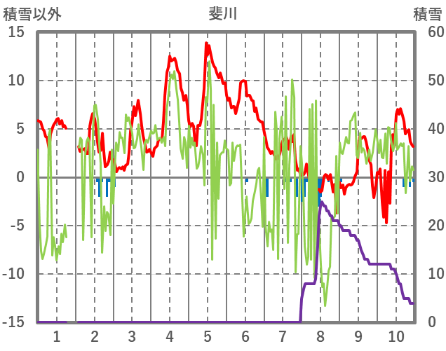 | 日 | 時 | 気温 | 降水 | 風向/風速 | 日照 | 積雪 | 降雪 |