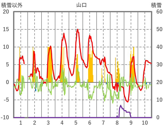 | 日 | 時 | 気温 | 降水 | 風向/風速 | 日照 | 積雪 | 降雪 |
