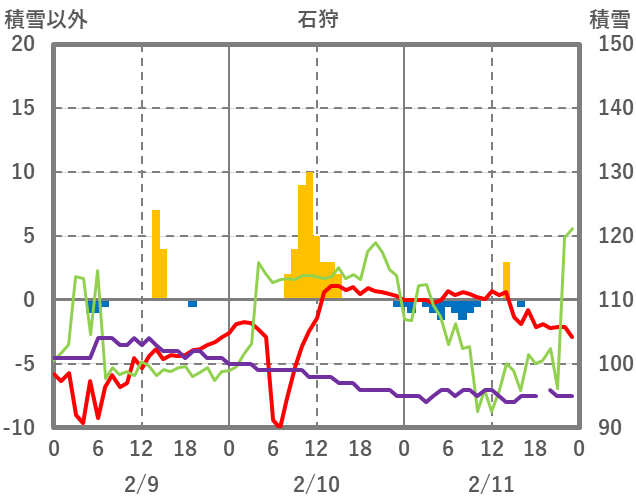 | 日 | 時 | 気温 | 降水 | 風向/風速 | 日照 | 積雪 | 降雪 |