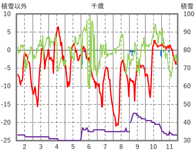 | 日 | 時 | 気温 | 降水 | 風向/風速 | 日照 | 積雪 | 降雪 |
