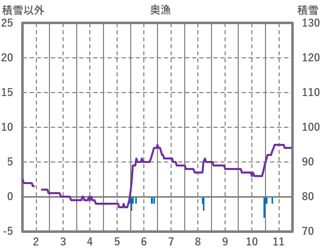 | 日 | 時 | 気温 | 降水 | 風向/風速 | 日照 | 積雪 | 降雪 |