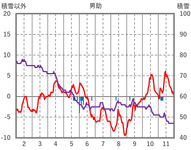 | 日 | 時 | 気温 | 降水 | 風向/風速 | 日照 | 積雪 | 降雪 |
