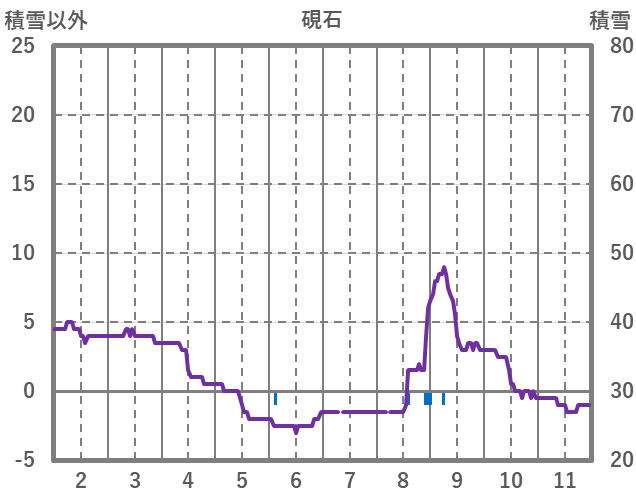 | 日 | 時 | 気温 | 降水 | 風向/風速 | 日照 | 積雪 | 降雪 |