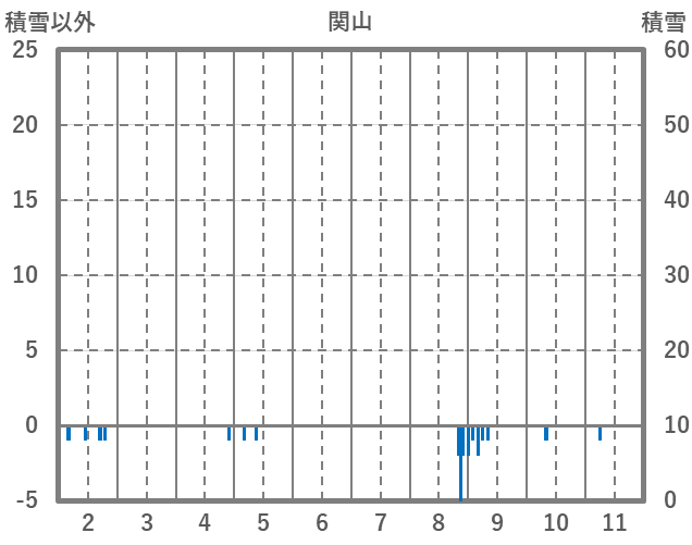 | 日 | 時 | 気温 | 降水 | 風向/風速 | 日照 | 積雪 | 降雪 |