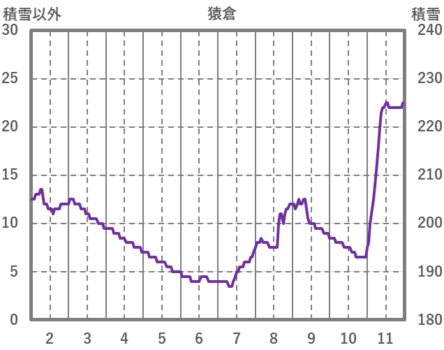 | 日 | 時 | 気温 | 降水 | 風向/風速 | 日照 | 積雪 | 降雪 |