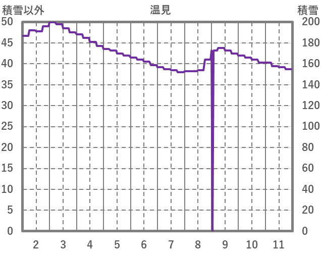 | 日 | 時 | 気温 | 降水 | 風向/風速 | 日照 | 積雪 | 降雪 |