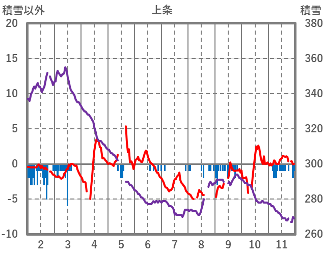 | 日 | 時 | 気温 | 降水 | 風向/風速 | 日照 | 積雪 | 降雪 |