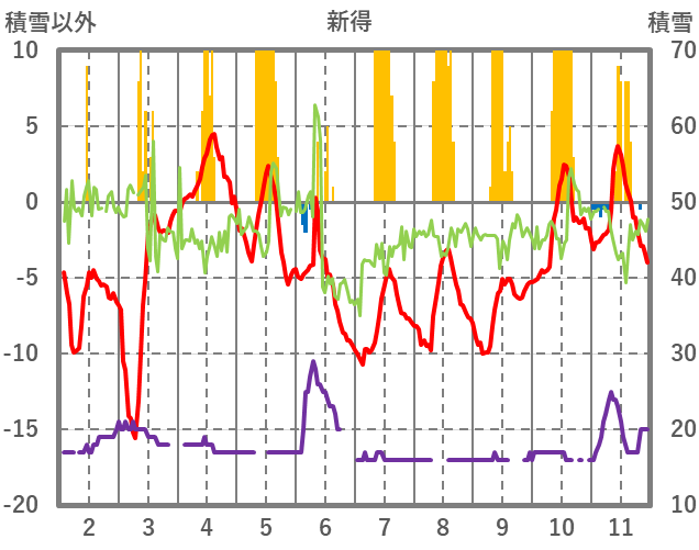| 日 | 時 | 気温 | 降水 | 風向/風速 | 日照 | 積雪 | 降雪 |