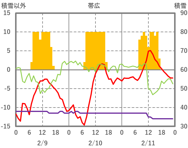 | 日 | 時 | 気温 | 降水 | 風向/風速 | 日照 | 積雪 | 降雪 |