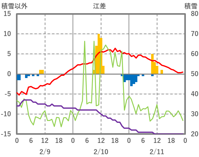 | 日 | 時 | 気温 | 降水 | 風向/風速 | 日照 | 積雪 | 降雪 |