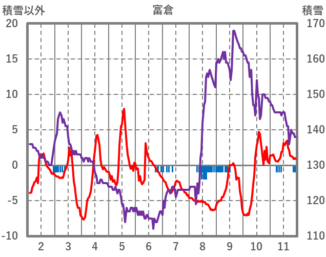 | 日 | 時 | 気温 | 降水 | 風向/風速 | 日照 | 積雪 | 降雪 |