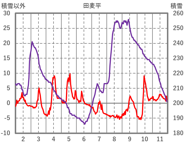 | 日 | 時 | 気温 | 降水 | 風向/風速 | 日照 | 積雪 | 降雪 |