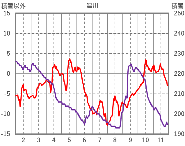| 日 | 時 | 気温 | 降水 | 風向/風速 | 日照 | 積雪 | 降雪 |