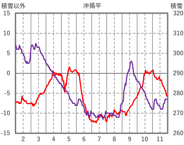 | 日 | 時 | 気温 | 降水 | 風向/風速 | 日照 | 積雪 | 降雪 |