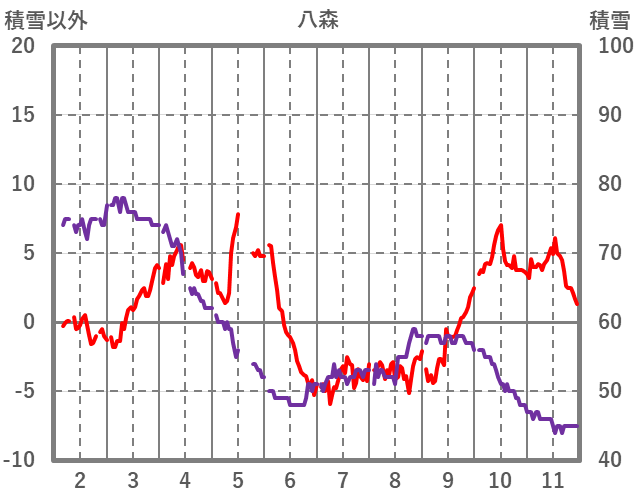 | 日 | 時 | 気温 | 降水 | 風向/風速 | 日照 | 積雪 | 降雪 |