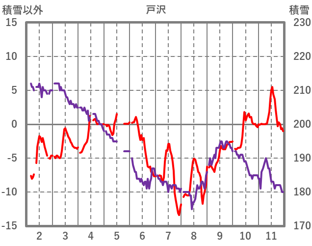| 日 | 時 | 気温 | 降水 | 風向/風速 | 日照 | 積雪 | 降雪 |