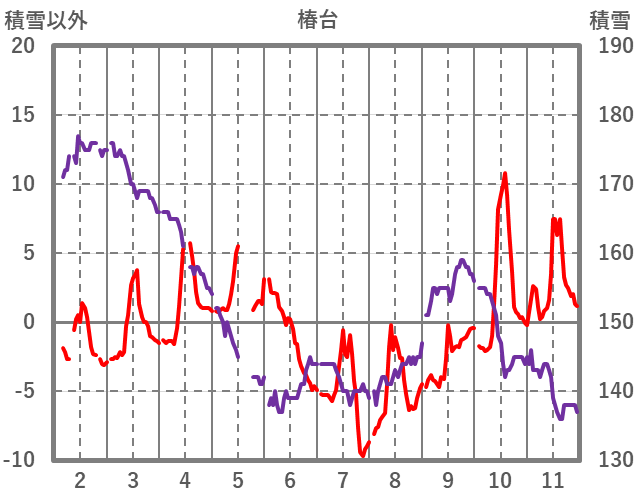 | 日 | 時 | 気温 | 降水 | 風向/風速 | 日照 | 積雪 | 降雪 |
