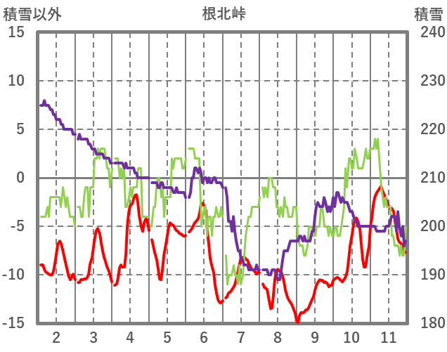 | 日 | 時 | 気温 | 降水 | 風向/風速 | 日照 | 積雪 | 降雪 |