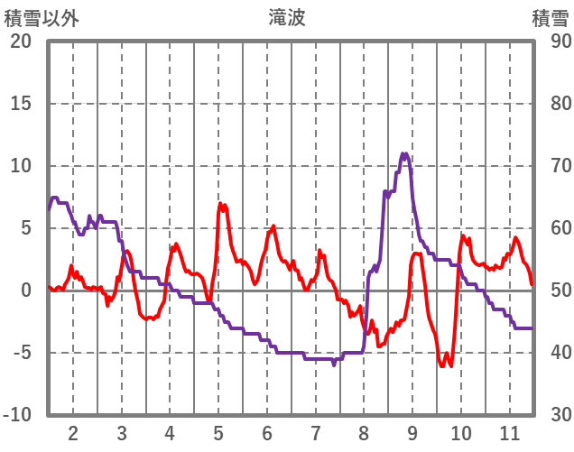 | 日 | 時 | 気温 | 降水 | 風向/風速 | 日照 | 積雪 | 降雪 |