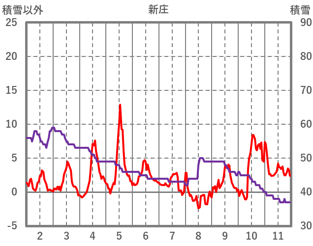 | 日 | 時 | 気温 | 降水 | 風向/風速 | 日照 | 積雪 | 降雪 |