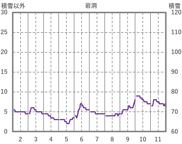 | 日 | 時 | 気温 | 降水 | 風向/風速 | 日照 | 積雪 | 降雪 |