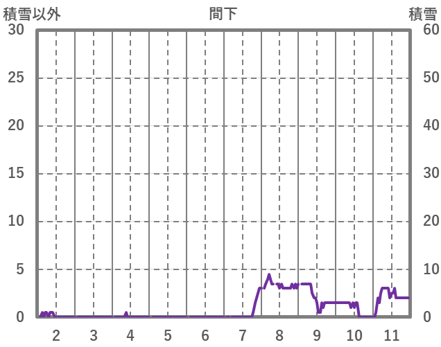 | 日 | 時 | 気温 | 降水 | 風向/風速 | 日照 | 積雪 | 降雪 |