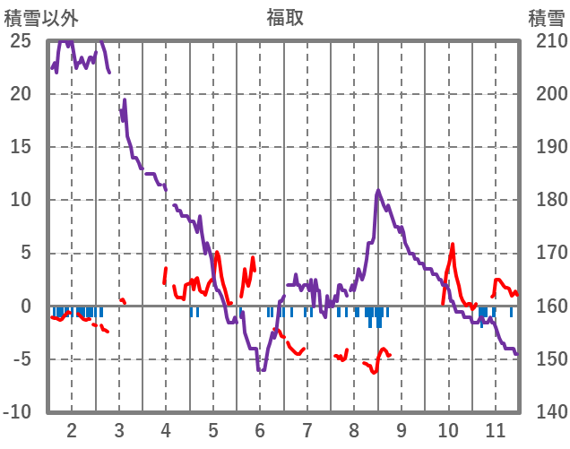 | 日 | 時 | 気温 | 降水 | 風向/風速 | 日照 | 積雪 | 降雪 |
