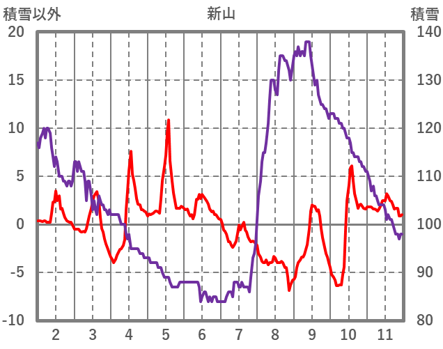 | 日 | 時 | 気温 | 降水 | 風向/風速 | 日照 | 積雪 | 降雪 |