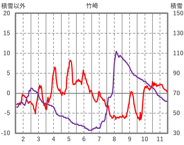 | 日 | 時 | 気温 | 降水 | 風向/風速 | 日照 | 積雪 | 降雪 |