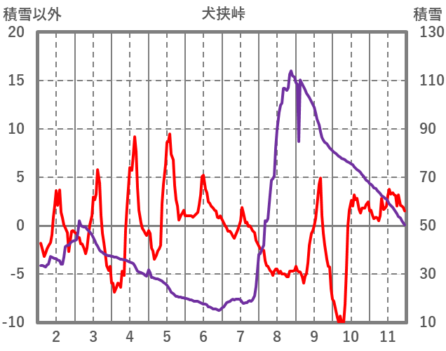 | 日 | 時 | 気温 | 降水 | 風向/風速 | 日照 | 積雪 | 降雪 |