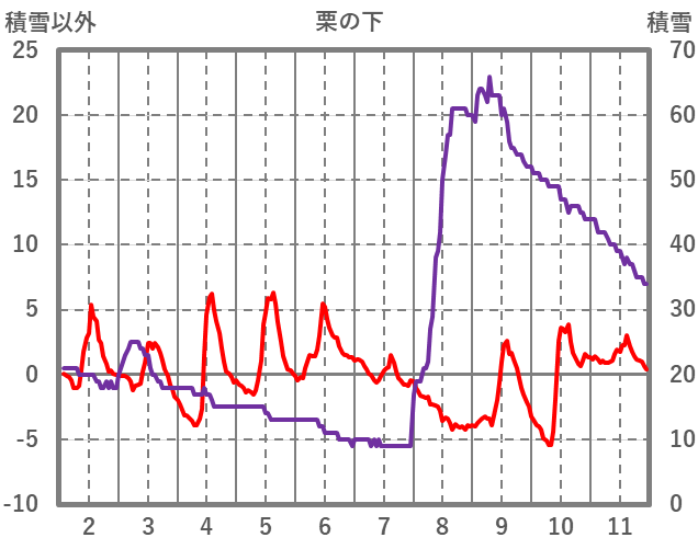 | 日 | 時 | 気温 | 降水 | 風向/風速 | 日照 | 積雪 | 降雪 |