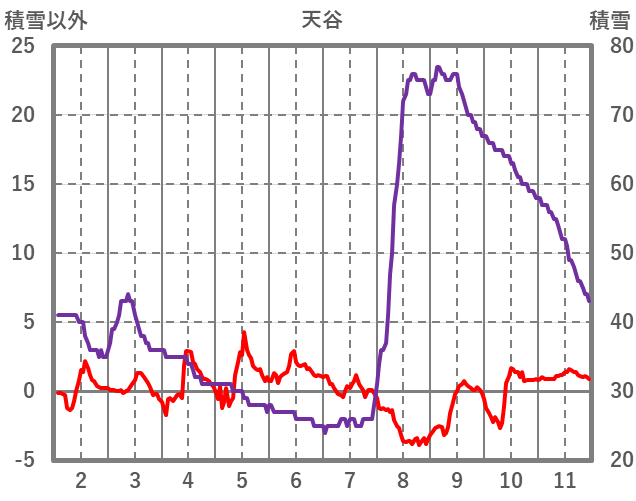 | 日 | 時 | 気温 | 降水 | 風向/風速 | 日照 | 積雪 | 降雪 |