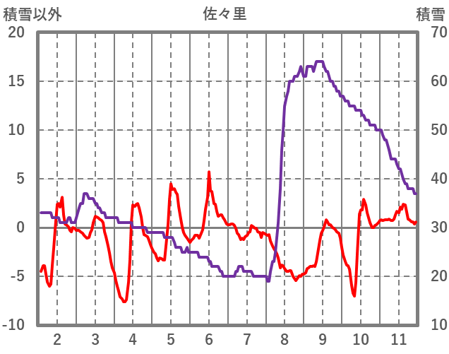 | 日 | 時 | 気温 | 降水 | 風向/風速 | 日照 | 積雪 | 降雪 |
