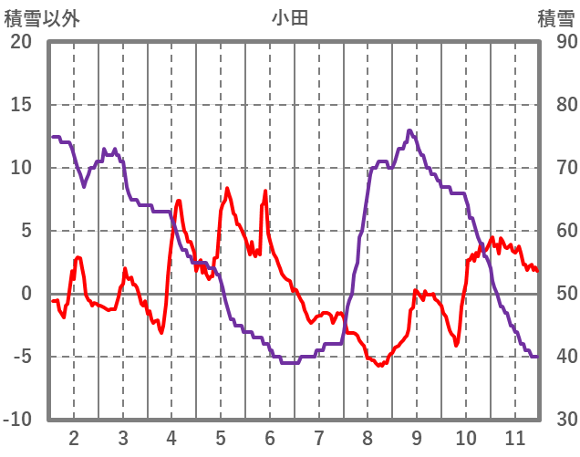 | 日 | 時 | 気温 | 降水 | 風向/風速 | 日照 | 積雪 | 降雪 |
