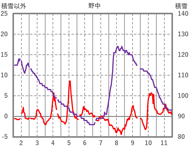 | 日 | 時 | 気温 | 降水 | 風向/風速 | 日照 | 積雪 | 降雪 |