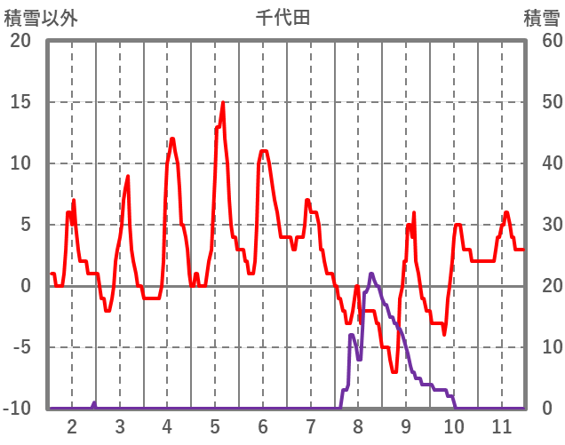 | 日 | 時 | 気温 | 降水 | 風向/風速 | 日照 | 積雪 | 降雪 |