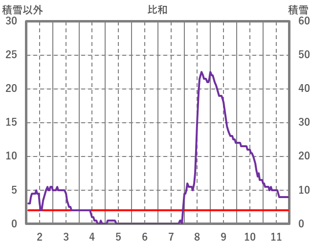 | 日 | 時 | 気温 | 降水 | 風向/風速 | 日照 | 積雪 | 降雪 |