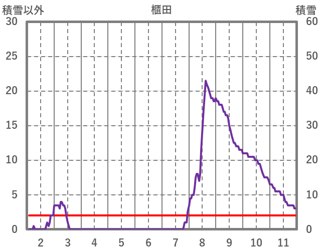 | 日 | 時 | 気温 | 降水 | 風向/風速 | 日照 | 積雪 | 降雪 |