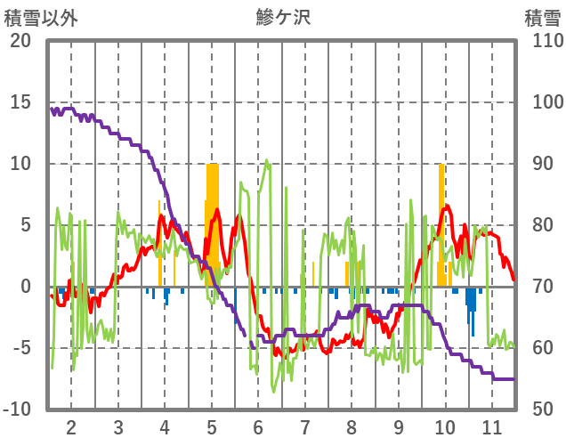 | 日 | 時 | 気温 | 降水 | 風向/風速 | 日照 | 積雪 | 降雪 |