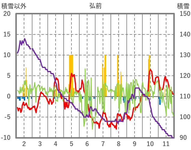 | 日 | 時 | 気温 | 降水 | 風向/風速 | 日照 | 積雪 | 降雪 |