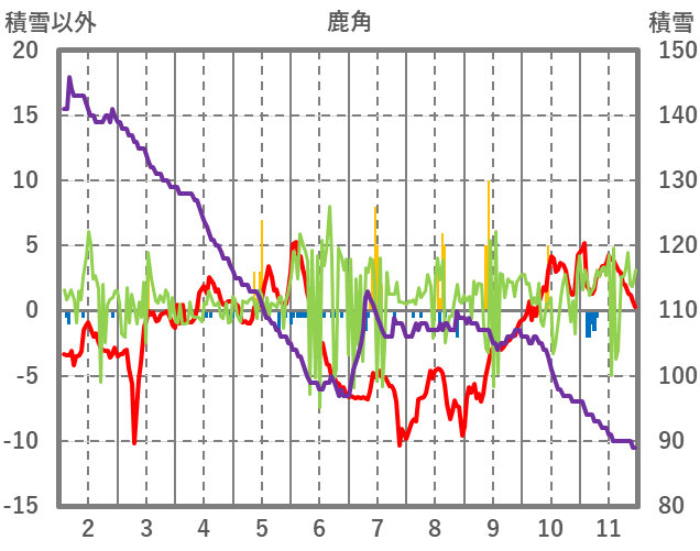 | 日 | 時 | 気温 | 降水 | 風向/風速 | 日照 | 積雪 | 降雪 |