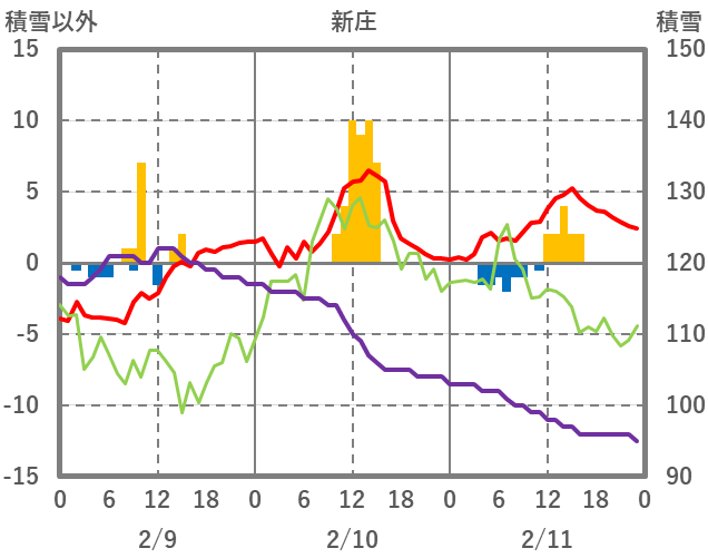 | 日 | 時 | 気温 | 降水 | 風向/風速 | 日照 | 積雪 | 降雪 |