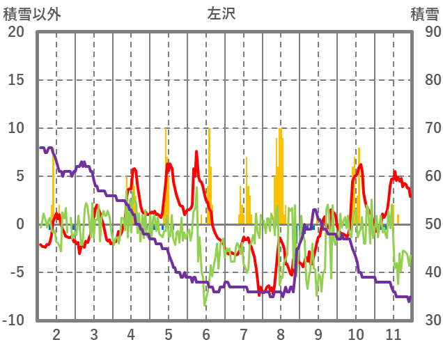 | 日 | 時 | 気温 | 降水 | 風向/風速 | 日照 | 積雪 | 降雪 |