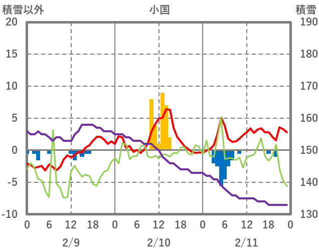 | 日 | 時 | 気温 | 降水 | 風向/風速 | 日照 | 積雪 | 降雪 |